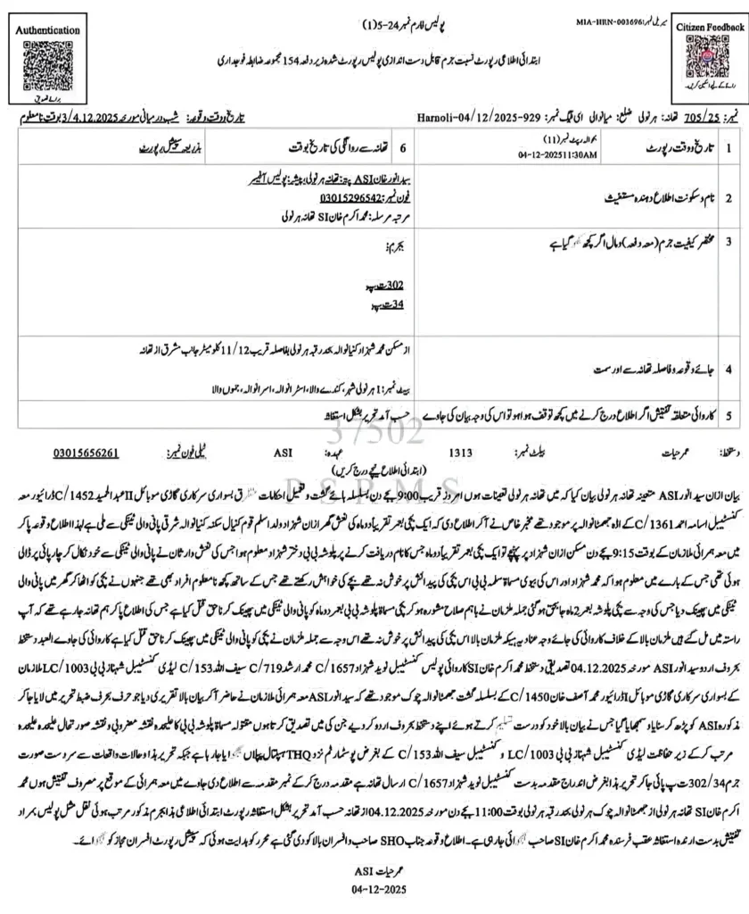 پولیس نے والد اور والدہ سمیت نامعلوم افراد کے خلاف دفعہ 302 اور 34 کے تحت مقدمہ درج کر لیا ہے۔