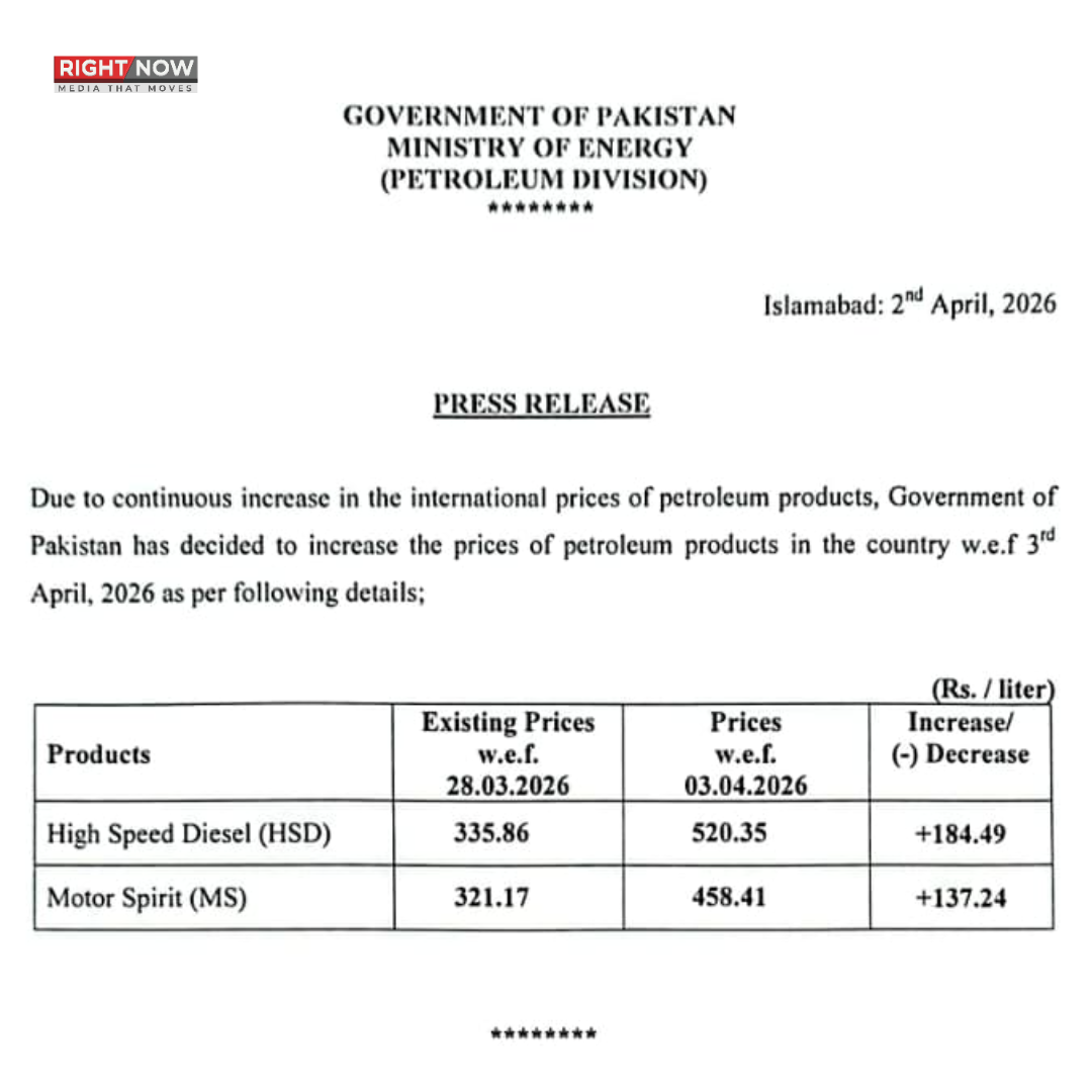 واضح رہے کہ مارچ 2026 میں بھی عالمی کشیدگی کے باعث پاکستان میں پٹرولیم مصنوعات کی قیمتوں میں بڑا اضافہ کیا گیا تھا۔ اس وقت پٹرول 55 روپے اضافے کے بعد 321.17 روپے اور ڈیزل 335.86 روپے فی لیٹر تک پہنچ گیا تھا۔